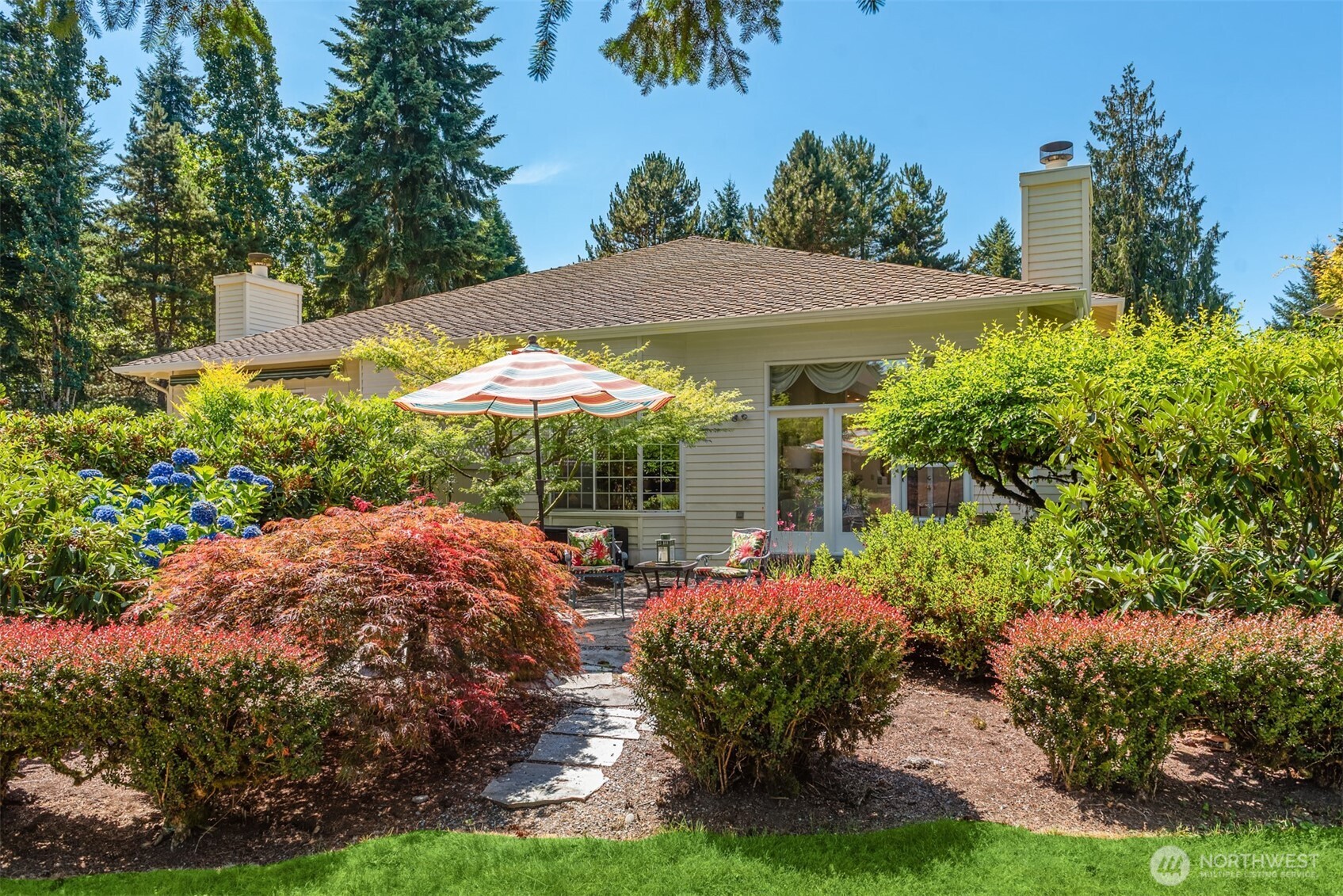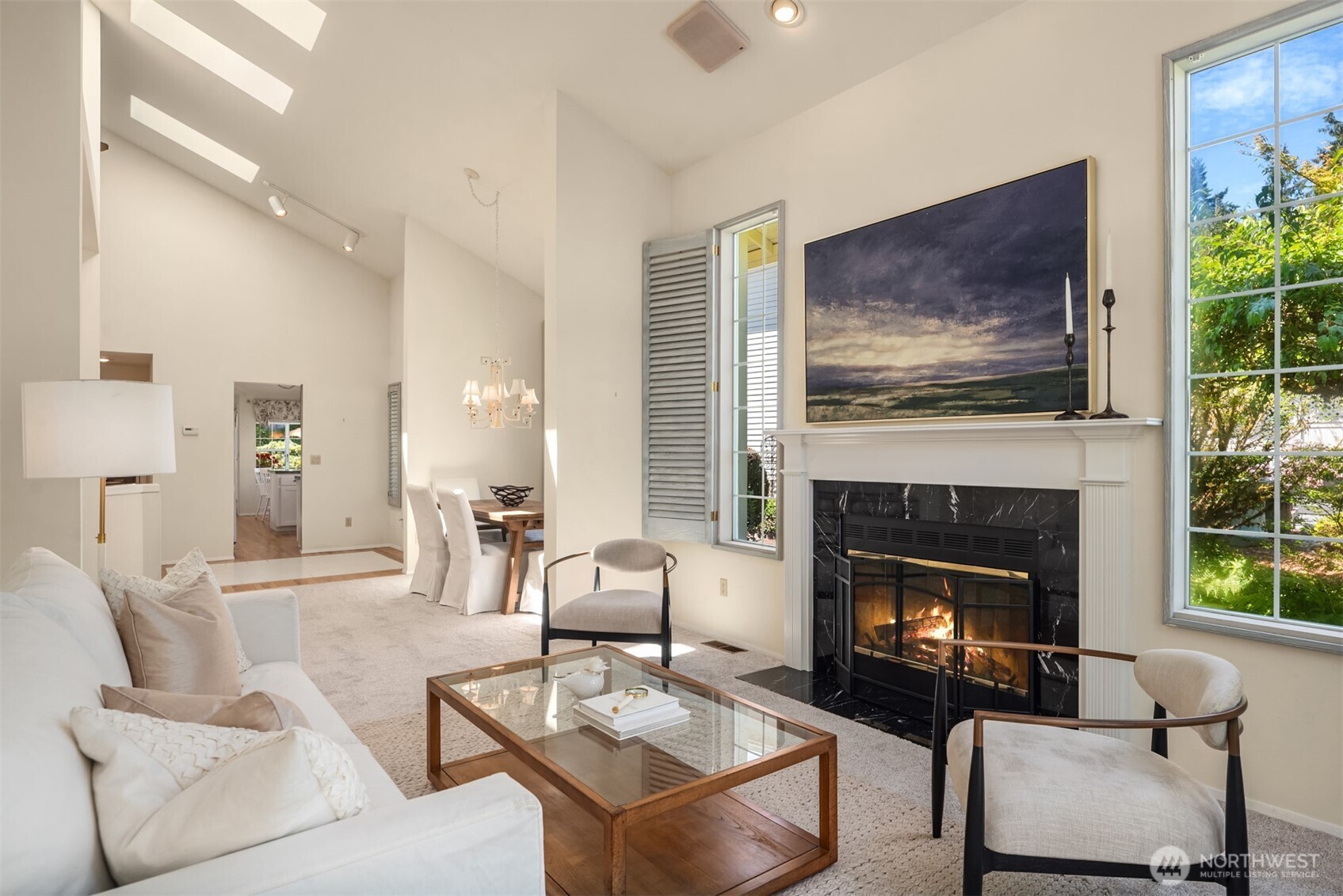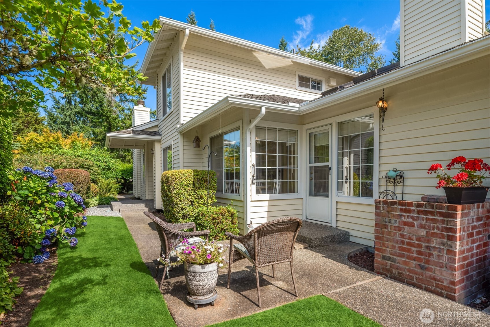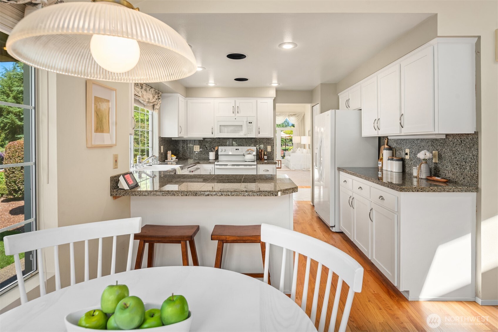 Stunning golf course views & easy one-level living from this well-appointed home in The Pointe. Tucked on a quiet cul-de-sac, this home offers true one-level living with a spacious primary suite featuring vaulted ceilings, walk-in closet, and private bath on first floor. Cozy kitchen anchors the main floor, connecting a sunny breakfast nook and family room with open living and dining rooms. Step outside the living room to a private patio overlooking the fairway with lush, mature landscaping. Ideal floor plan for daily living or entertaining many in style. Upstairs, a second bedroom, full bath, & versatile loft. Two car garage, A/C, storage, gas fireplaces in living and family rooms and formal entry. Join the community at The Pointe!
