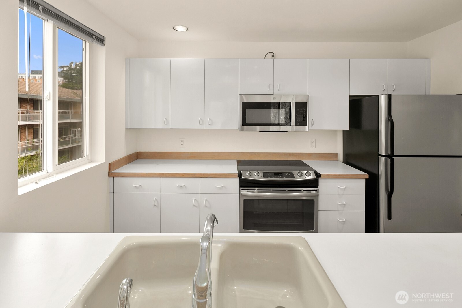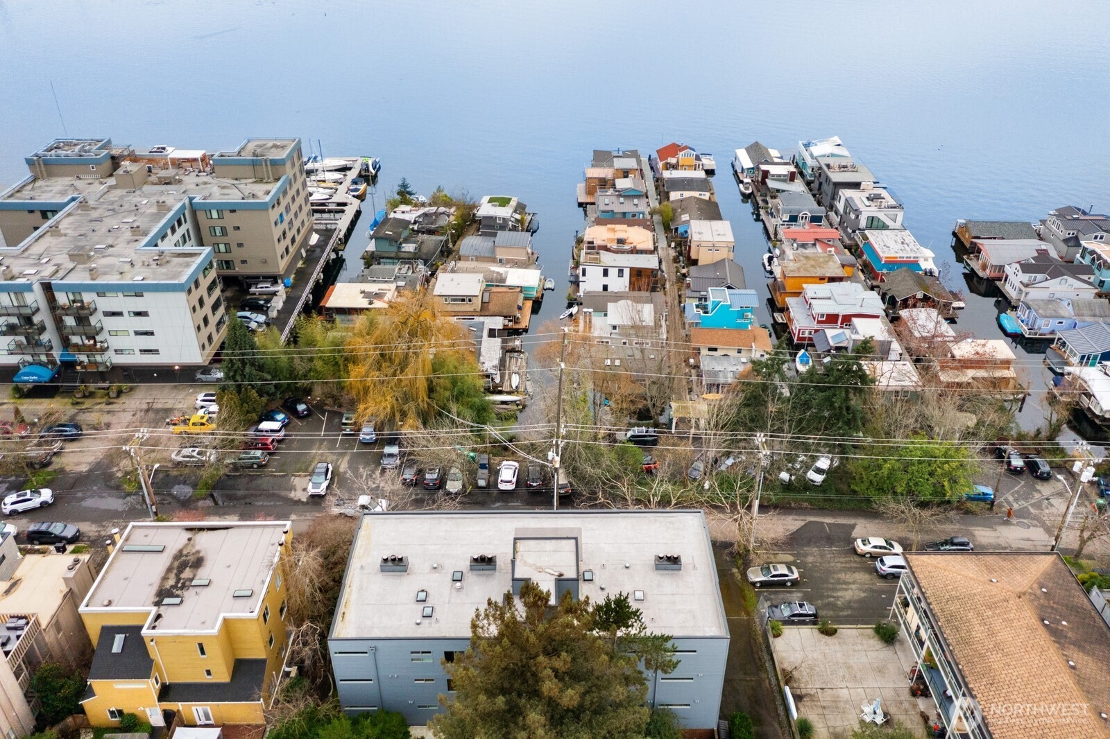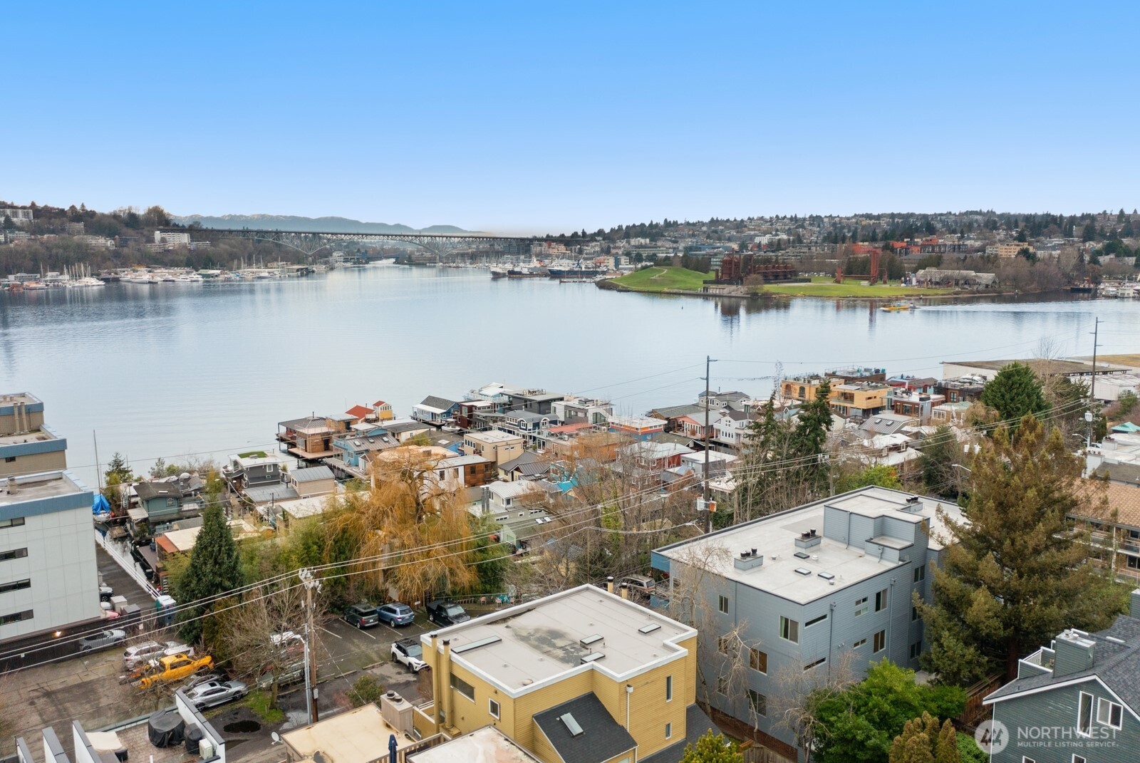 Light-filled Eastlake condo ideally located across from iconic Lake Union floating homes. This inviting 2-bedroom, 1.75-bath home offers an open layout with abundant windows, bringing in natural light and lovely treetop views of Lake Union. The comfortable primary suite includes a private bath, while stainless steel appliances and a cozy fireplace make everyday living easy and welcoming. Enjoy panoramic sunset views of the Space Needle to the Aurora Bridge, Olympics and beyond from rooftop. Major building updates in 2018 include new siding, roof, and high-quality double-pane windows. Two parking spaces--one secured garage and one carport--plus extra storage add rare convenience. Set on Fairview Ave E, a quiet, charming, tree-lined street close to waterfront walks, grocery, cafes, and all that makes Eastlake such a special place to call home.